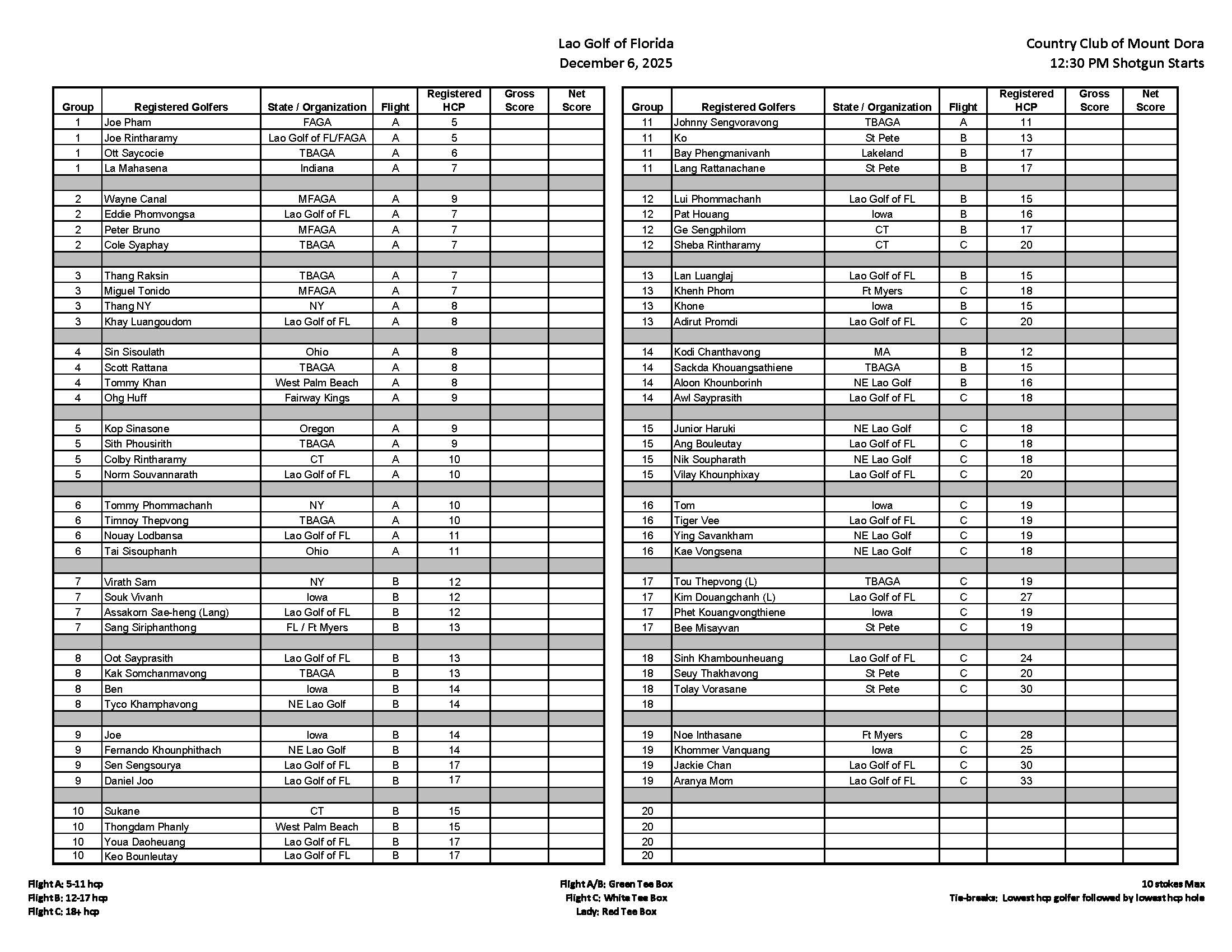 Format: Stroke Play - winners are determined by lowest Net Score, cap at 69